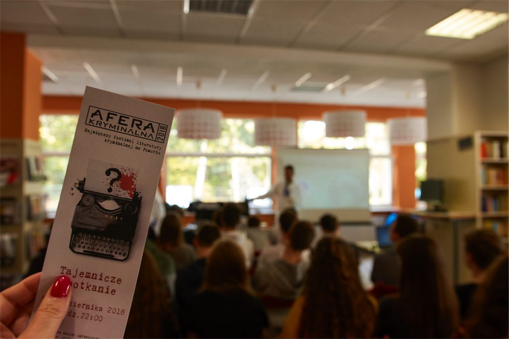 Afera Kryminalna to największy na Pomorzu festiwal kryminału, który powstał w 2011 roku z inicjatywy Wojewódzkiej i Miejskiej Biblioteki Publicznej w Gdańsku oraz gdańskiego wydawnictwa Oficynka. W tym roku do obchodów przyłączyliśmy się z klasą Ib p.prof Eweliny Wojdyło oraz z częścią uczniów z klasy Ia p.prof. Ali Koman. Zajrzeliśmy do oliwskiej filii Wojewódzkiej Biblioteki Publicznej, w której biegli ze szkoły kryminalistyki z Piły zdradzali tajniki przeprowadzania śledztwa w oparciu o daktyloskopię i dermatoskopię.