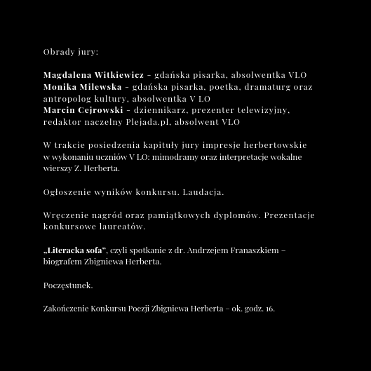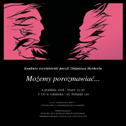 6 XII 2018 w auli V LO w Gdańsku odbędzie się Konkurs recytatorski Poezji Zbigniewa Herberta “Możemy porozmawiać…”
