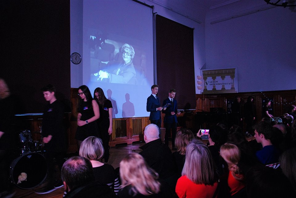 Publiczność dopisała, a aula do końca koncertu pękała w szwach. Gościem specjalnym była, wspierająca nas zawsze, pani prof. Małgorzata Twarowska, inicjatorka i koordynatorka Talentów w latach 1995-2000. Koncert rozpoczęliśmy od chwili zadumy i wspomnienia naszej Absolwentki pani Zofii Czerwińskiej, która kilka dni wcześniej odeszła od nas na zawsze. Wspaniała aktorka, wyjątkowa artystka, nie raz gościła w Piątce przy okazji jubileuszy czy innych szkolnych uroczystości. Na zawsze pozostanie w naszej pamięci.