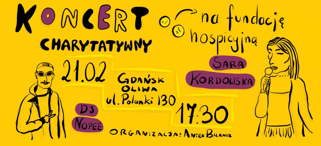 Już w najbliższy piątek 21 lutego zapraszamy na koncert charytatywny Sary Kordowskiej, artystki z trójmiasta. Organizatorami wydarzenia są Natalka Podworska i Antek Biłanicz z V LO w Gdańsku.