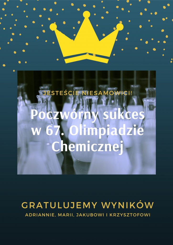 Chcielibyśmy pogratulować wysokich wyników wszystkim reprezentantom naszej szkoły w 67. Olimpiadzie Chemicznej: