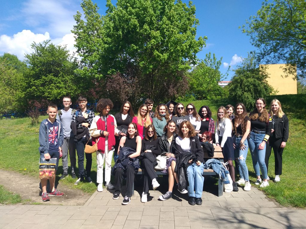 17 maja 2021 długo oczekiwany dzień powrotu do szkoły i wylogowania z Teamsów, wywołał reakcję paradoksalną – obawę przed tym, czy przyzwyczaimy się do stacjonarnego trybu nauki po tak długiej przerwie. Dlatego większość klas spędziła pierwszy dzień z wychowawcą i to nie w murach szkoły, ale na “zielonej trawce”. Wbrew prognozom pogoda dopisała, a aura majówki sprzyjała radości spotkania po tej wymuszonej rozłące. Klasa 2Cp w plenerach Parku Reagana rozpoczęła zdjęcia do filmu opowiadającego o ich doświadczeniach pandemicznych.