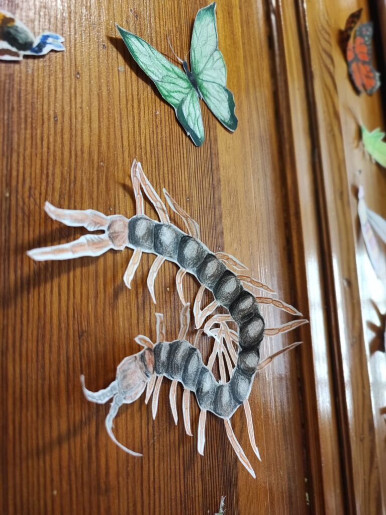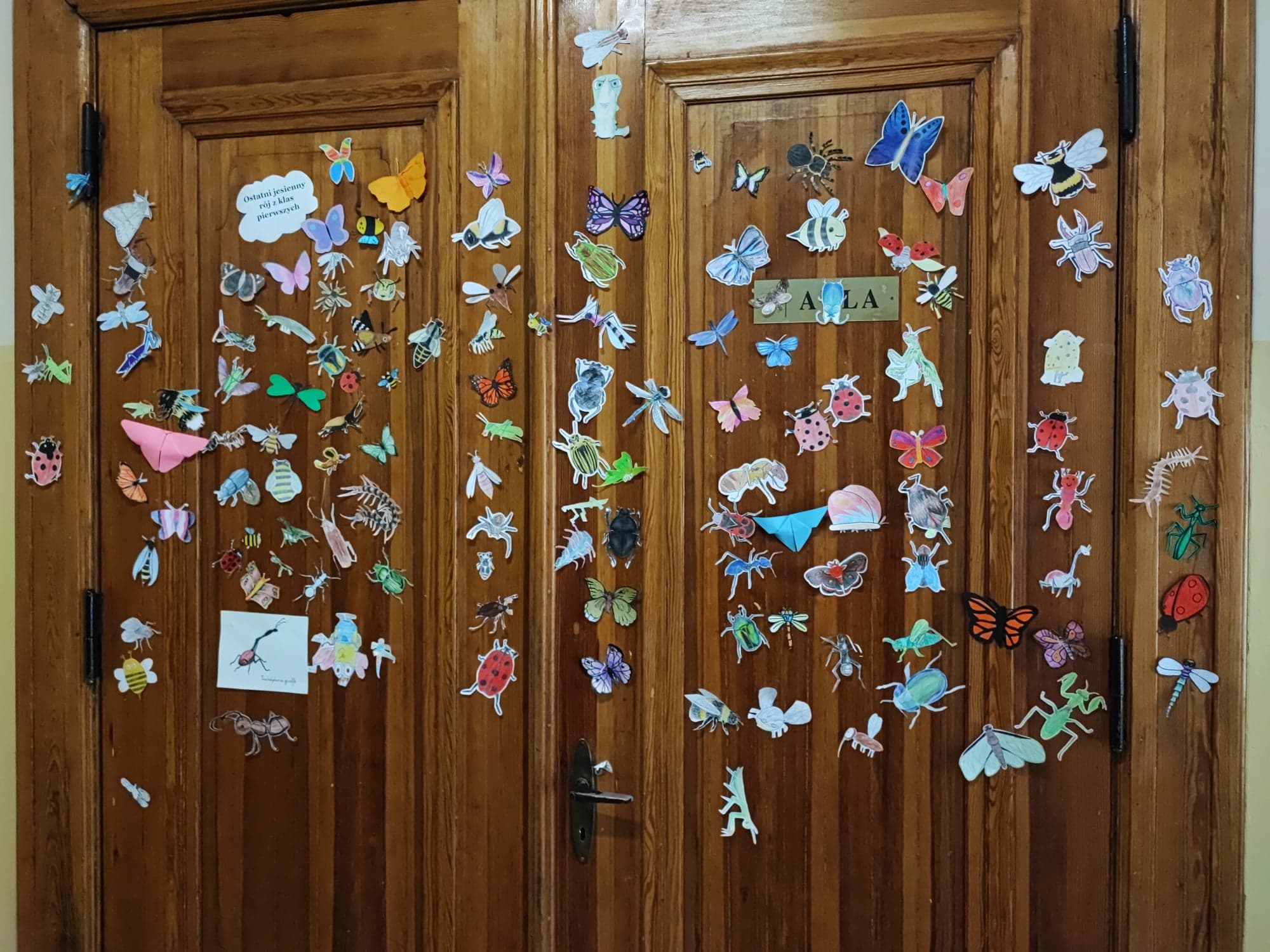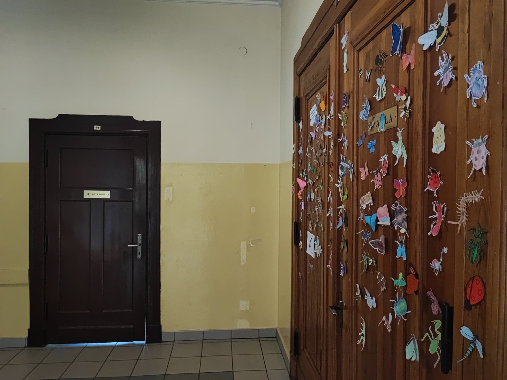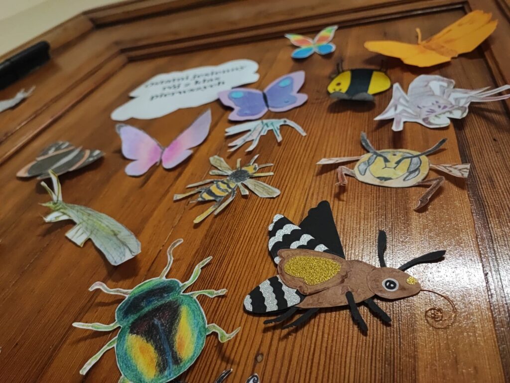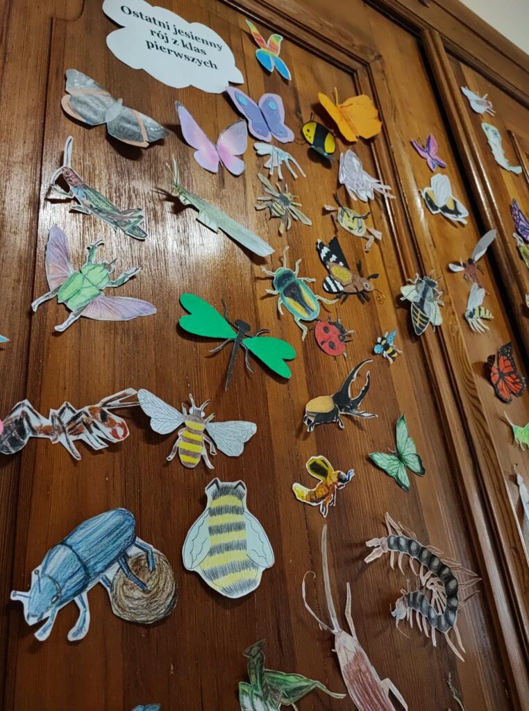 Pszczoły, trzmiele, chrząszcze, żuki, motyle, a nawet skolopendry…. To już ostatnie chwile, gdy w tym roku kalendarzowym będziemy je mogli spotkać i oglądać. Za chwilę fale chłodów i mrozów zagonią owady w niedostępne miejsce. Dlatego całe szczęście Ostatni Jesienny Rój możemy oglądać na drzwiach auli, gdzie przycupną w swojej wielobarwności i różnorodności! Podziękujmy jednocześnie naszym utalentowanym uczennicom i uczniom klas pierwszych, którzy wykonali te wspaniałe prace w ramach lekcji plastyki. Cieszmy się tymi fenomenami natury i odgadujmy, jakie to gatunki owadów obsiadły drewniane drzwi!… Miejmy też nadzieję, że wrócą do nas kiedyś w innych, nowych i zaskakujących aranżacjach!