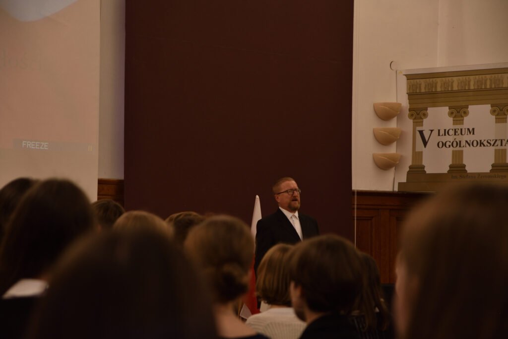 Dziesiątego listopada miały miejsce w naszym liceum obchody Święta Niepodległości. Zgromadzeni w auli uczniowie i nauczyciele punktualnie o godzinie 11.11 odśpiewali Mazurka Dąbrowskiego a następnie wysłuchali prelekcji wygłoszonej przez prof. Jacka Rześniowieckiego “11 Listopada 1918, droga do niepodległości”.