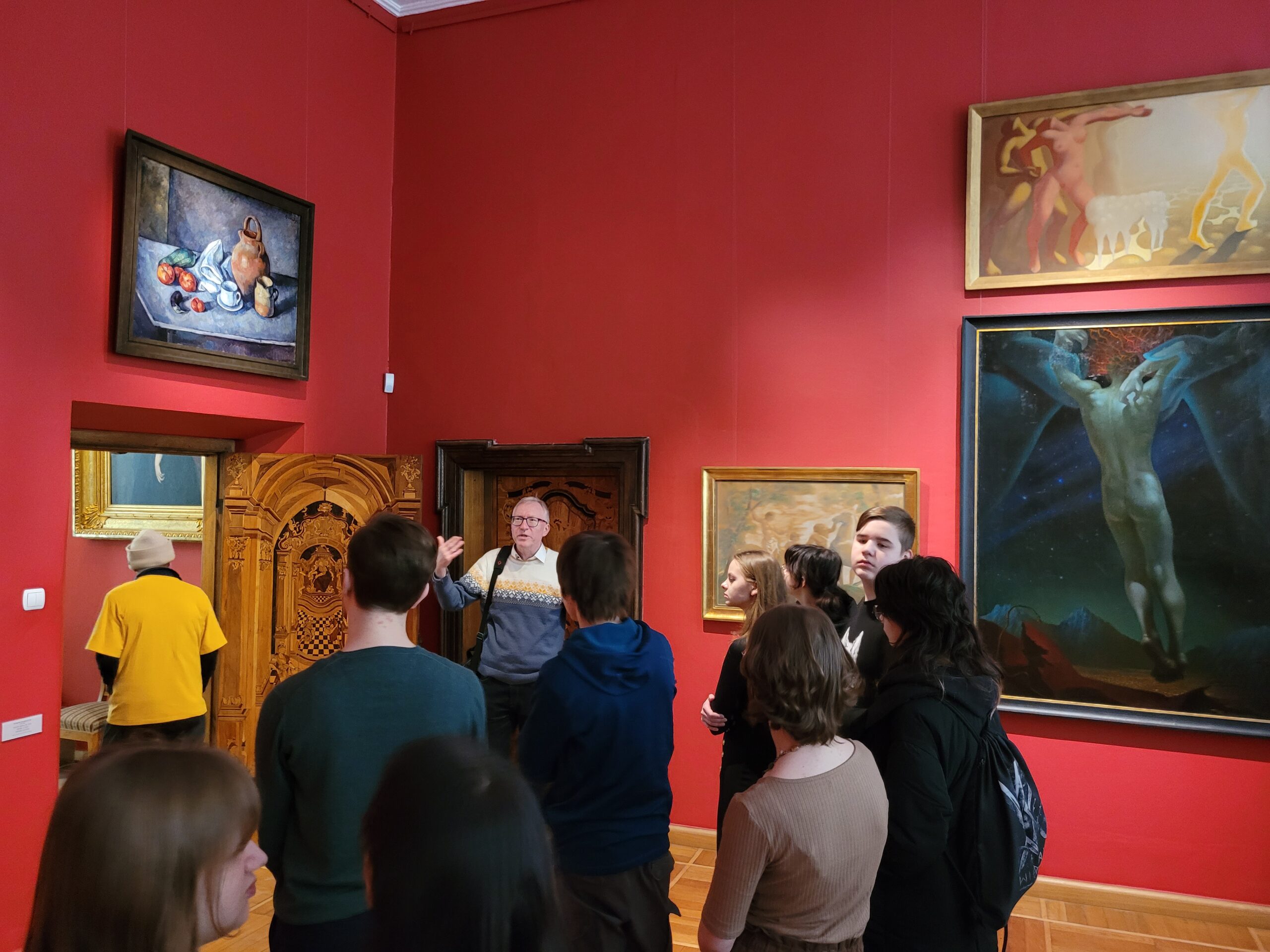 W CSW z kolei, na dwóch piętrach zderzyliśmy się z wytworami drapieżnego, niepokornego ekspresjonizmu grupy artystycznej; Mülheimer Freiheit . Poprzez swój duży format, wyraziste kolory i treść dzieła przemawiały silnie do naszej młodzieży. Każdy starał się je interpretować po swojemu, oraz szukał w swoim wnętrzu odpowiedzi na przesłania tych obrazów malowanych przez artystyczną grupę w Kolonii blisko 50 lat temu. Wystawa na tyle się podobała,ze ledwo co zdążyliśmy na pociąg powrotny, który odchodził już o 14.40. Szczęśliwie jednak i w humorach dotarliśmy do Trójmiasta, przywożąc i mnóstwo wrażeń i-zapewne- piernikowe upominki dla rodzin! Liczymy, że jeszcze przed wakacjami uda nam się pojechać na kolejną, artystyczną wyprawę! Może już w cieplejszych okolicznościach!