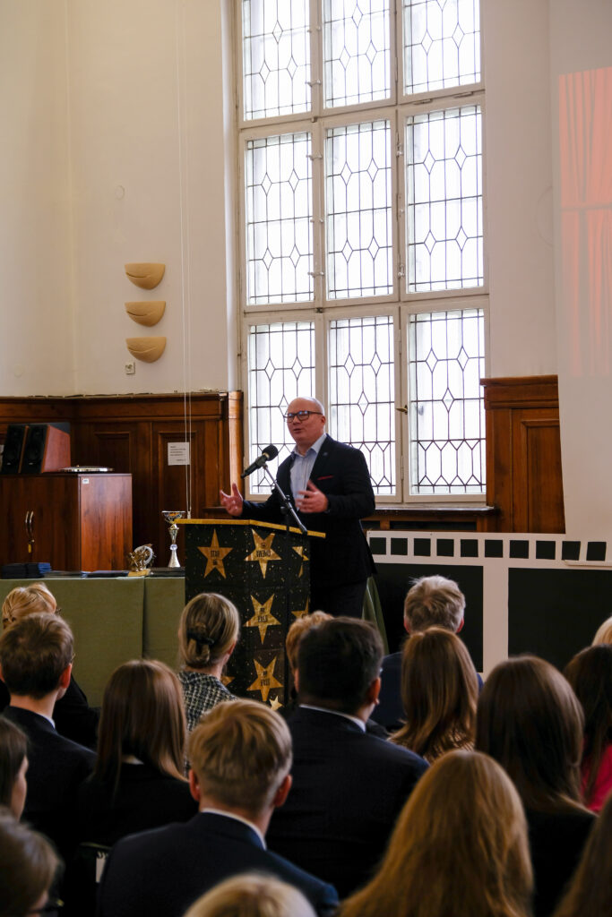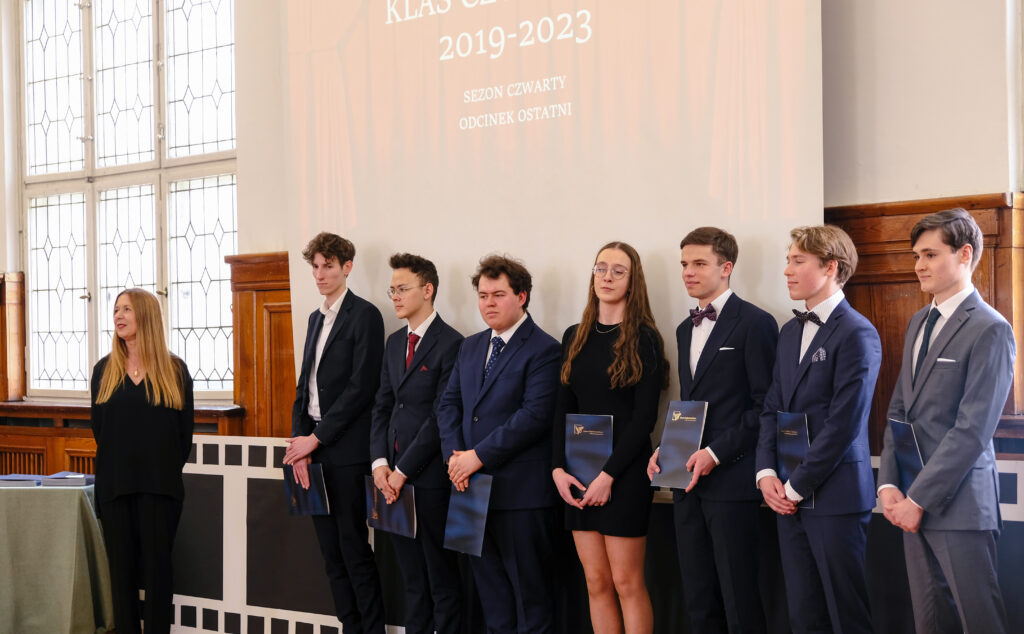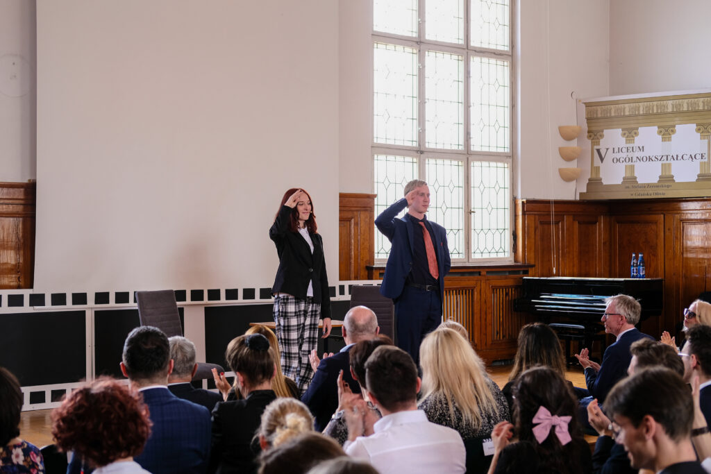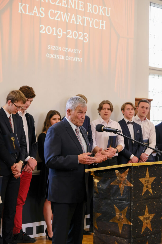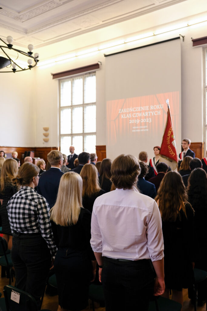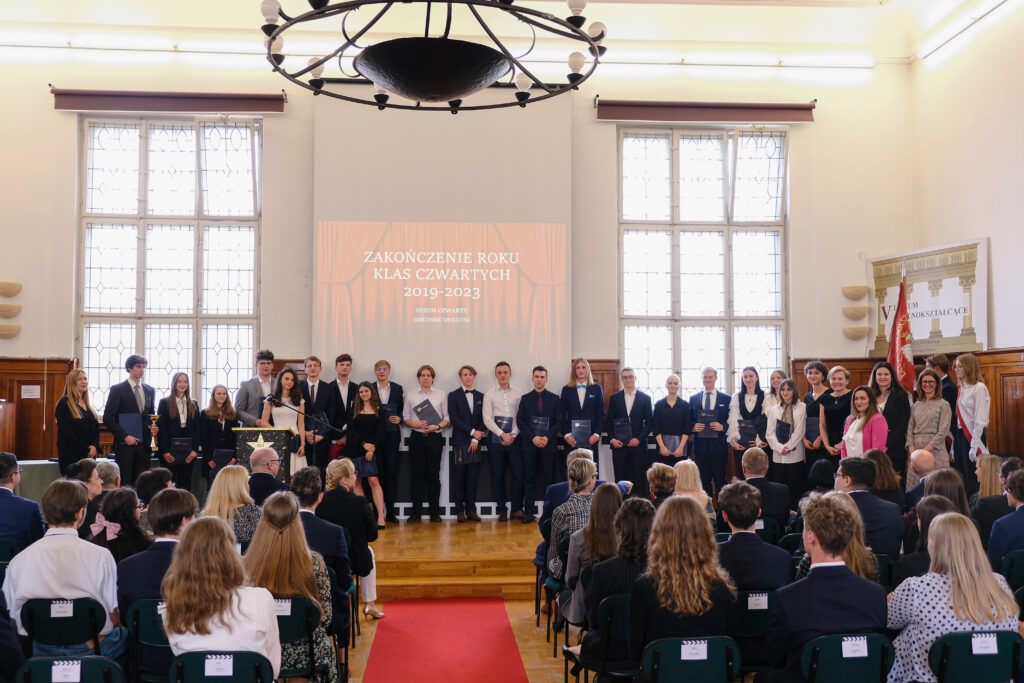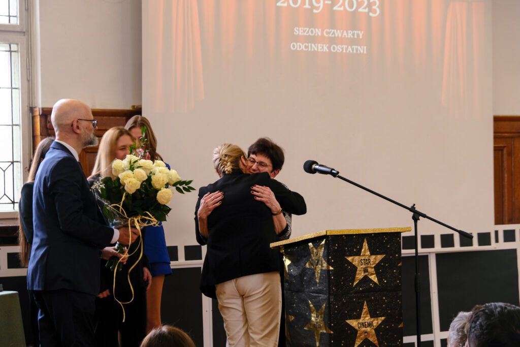 Słowo pożegnanie brzmi zawsze smutno, ale tego dnia wszyscy postarali się, aby dzień 28 kwietnia został zapamiętany jako radosny, pełen wzruszeń i na pewno wyjątkowy. Po czterech latach nauki zarówno zdalnej jak i stacjonarnej, pośród niepewności jutra, zmian przepisów i zaskakującej rzeczywistości, uczennice i uczniowie klas czwartych po raz ostatni jako uczniowie V LO spotkali się we wspólnym gronie w auli szkoły.