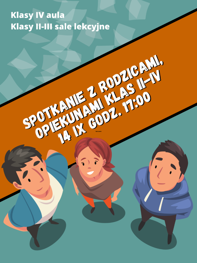 14 września 2023 r. odbędzie się spotkanie z Rodzicami i Opiekunami prawnymi klas II-IV