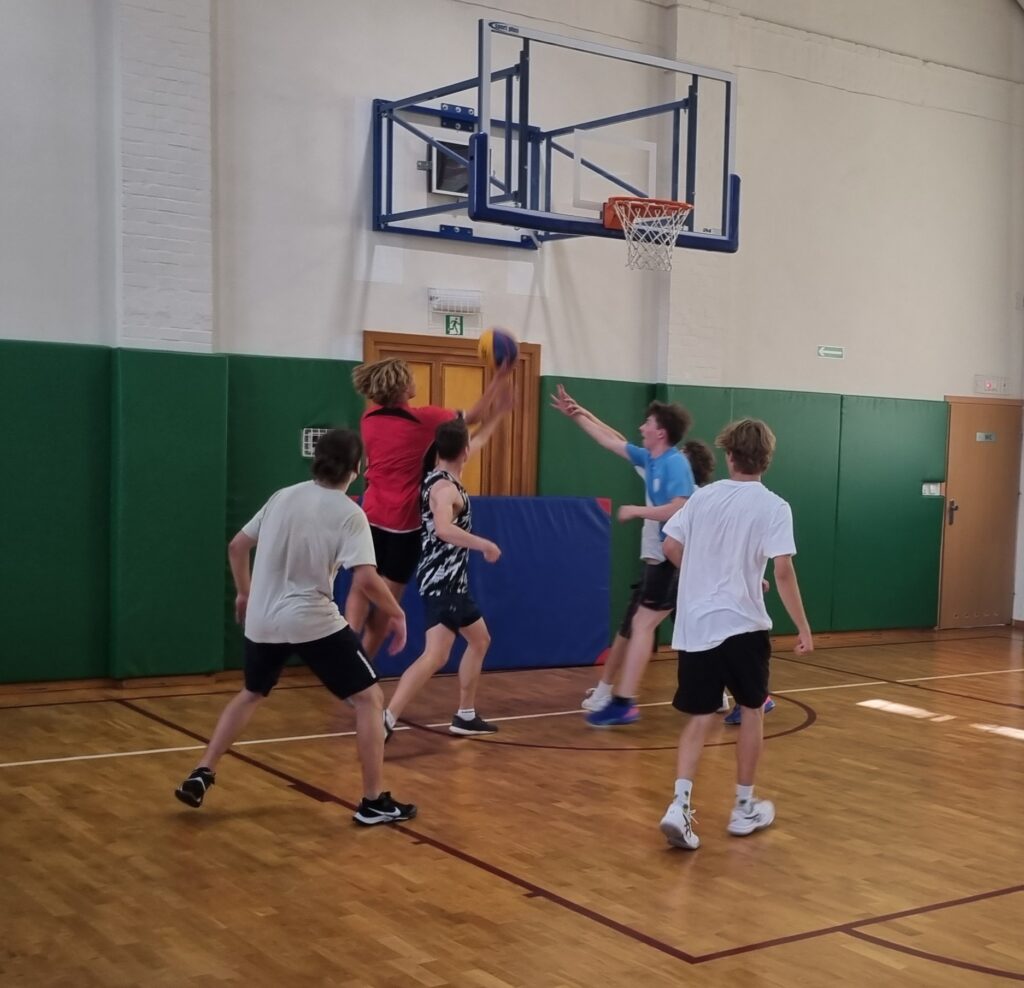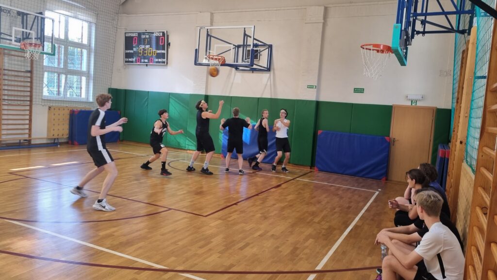 Do szkolnego turnieju koszykówki 3×3 zgłosiło się sześć klas: 2d, 2e, 3a, 3b, 3d, 4d. W pierwszej części rozgrywek rywalizacja toczyła się w dwóch grupach. Do dalszej gry awansowały cztery drużyny: 2e, 3a, 3d oraz 4d.