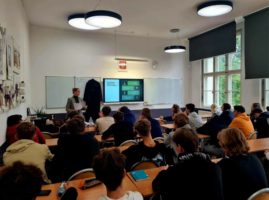 We wtorek 10.10.2023 r. klasa 3b wzięła udział w zajęciach odbywających się w ramach ogólnopolskiej akcji ,,Adwokaci rozjaśniają prawo”. Adwokat Małgorzata Głódkowska opowiedziała nam, jak bronić się przed cyberhejtem, cyberstalkingiem oraz jak prawnie zwalczać nienawiść w wirtualnym świecie.