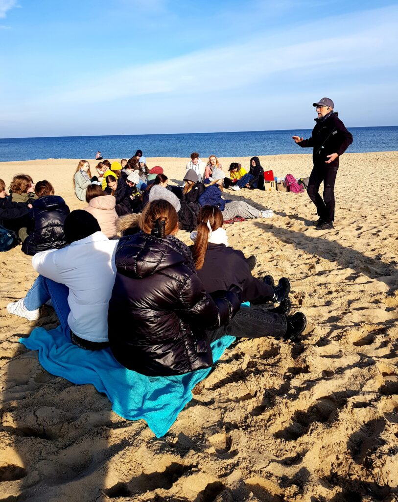 Klasa 1 A uczestniczyła w zajęciach terenowych organizowanych przez Centrum Nauki Eksperyment w Gdyni i realizowanych w ramach Projektu “See Science, Save Seashores”. Jego celem są badania naukowe w obszarze poziomu polskich plaż wzdłuż linii brzegowej Morza Bałtyckiego i próby określenia obecności morszczynu pęcherzykowatego. Naszym uczniom powierzono przeczesywanie piasku w poszukiwaniu mezoplastiku na wyznaczonym odcinku plaży na Wyspie Sobieszewskiej. Zajęcia poprzedziło spotkanie z dr Tomaszem Kijowskim z Instytutu Oceanologii PAN.