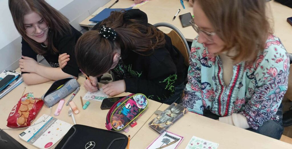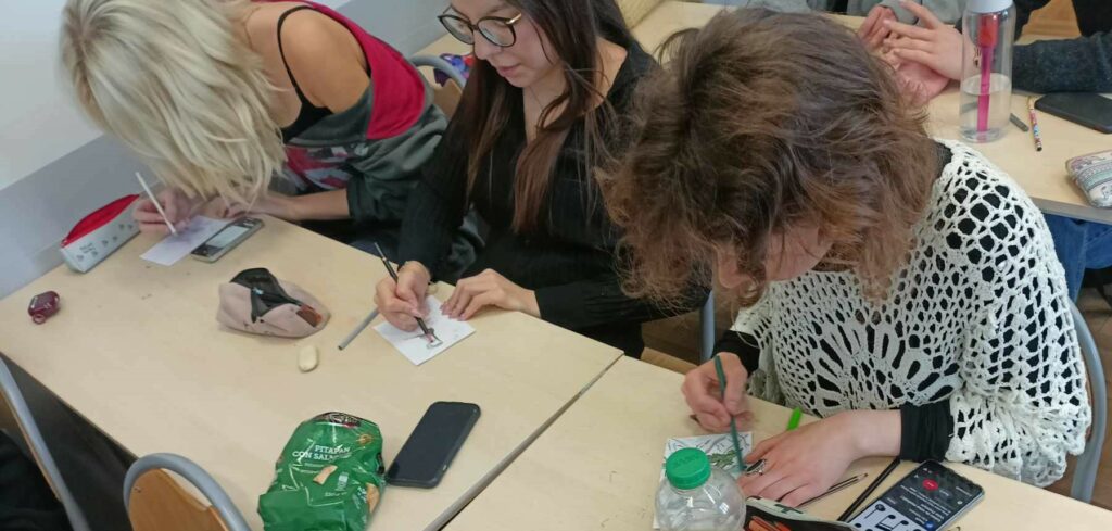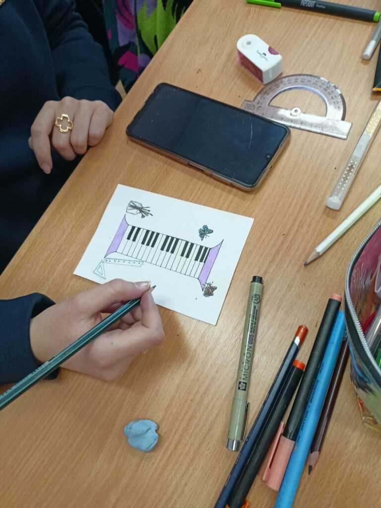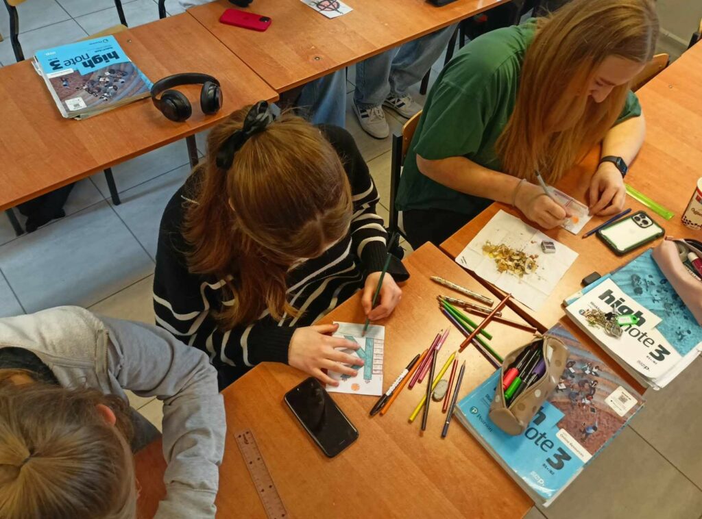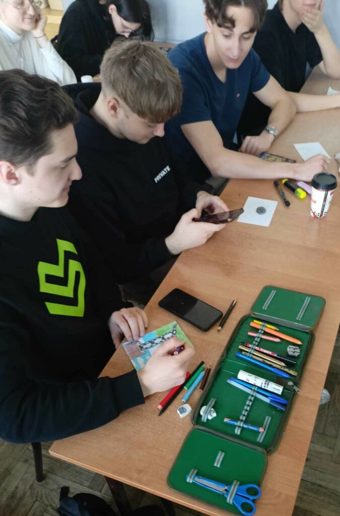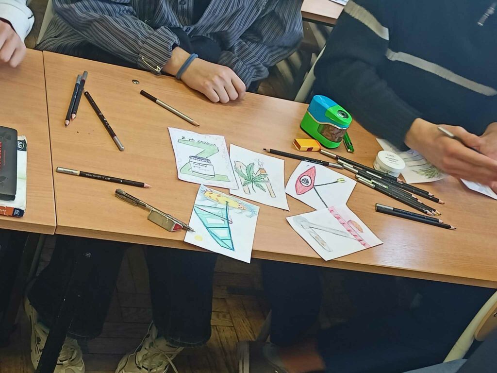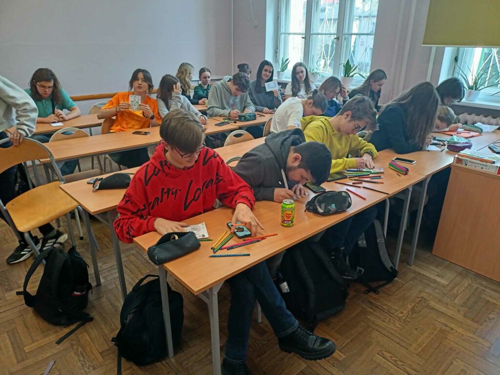 I wreszcie doczekaliśmy się! Zapowiadana Godzina dla Sztuki w V LO nadeszła na czwartej godzinie lekcyjnej, 14 marca w czwartek, do tego jeszcze w światowym dniu Matematyki! I faktycznie trudno byłoby się doliczyć tych uczniów, którzy nie uczestniczyli w artystycznym święcie rysowania kredkami! We wszystkich salach, a nawet na sali gimnastycznej, słychać było szuranie kredek po papierze. Każde z uczestników zabawy rysowało na formacie A-6 pierwszą literę swojego imienia łącząc ją z plastycznie wykreowanym światem swoich pasji, zainteresowań, ulubionych aktywności. Nasi Piątkowicze, ale także nauczycielki i nauczyciele, dzielnie zmagali się z formą rysunku, obmyślając jak przelać na papier obiekty swoich zainteresowań!