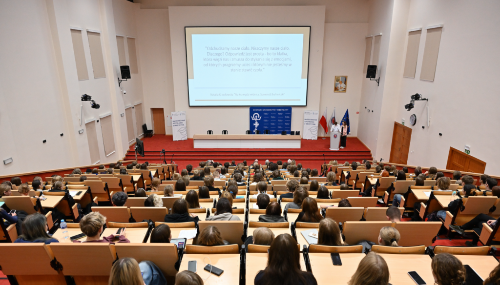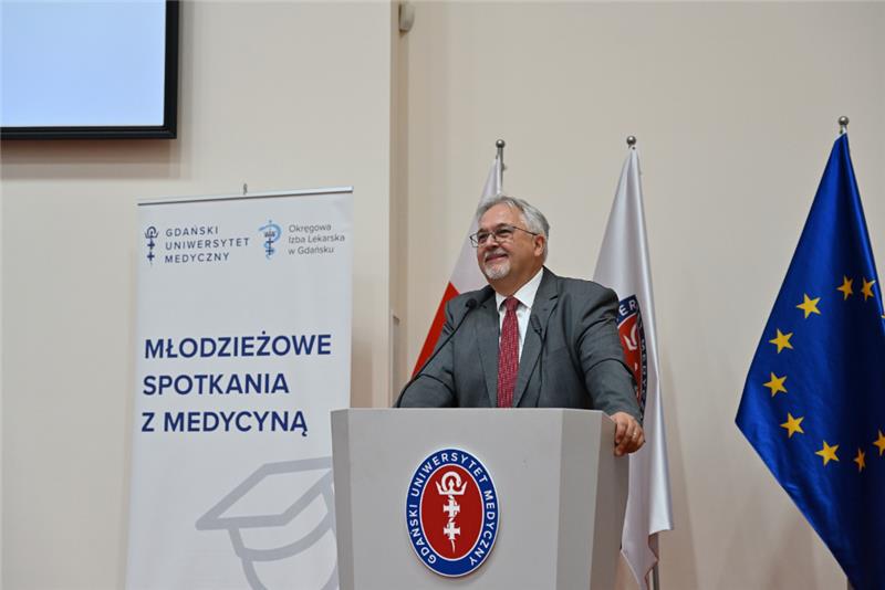 Uczniowie klas medycznych byli uczestnikami Młodzieżowych Spotkań z Medycyną, które odbyły się już po raz 14. w auli GUMedu. Jako prelegent wystąpił dr hab. n. med. płk. Jacek Siewiera. Na co dzień Sekretarz Stanu w Kancelarii Prezydenta RP i szef Biura Bezpieczeństwa Narodowego. W swojej prezentacji przypomniał, że jest też lekarzem anestezjologiem. Historia przedstawiona pn. „Pierwsze tygodnie pandemii w świetle doświadczeń z misji do Włoch” ukazała zgromadzonym nieznany powszechnie wątek z najnowszej historii kraju. W pierwszych tygodniach szalejącej w Lombardii pandemii minister Siewiera i towarzyszący mu lekarze wyjechali do Bergamo, gdzie pomagali w jednym z włoskich szpitali. W prezentacji uczestnicy mogli obejrzeć nigdzie nie publikowane zdjęcia. Konferencję zwieńczył wykład profesora GUMed, dr hab. n. med. Tomasza Smiatacza, Kierownika Kliniki Chorób Zakaźnych GUMed, konsultanta wojewódzkiego w dziedzinie chorób zakaźnych, członka Komitetu ds. Kryzysu Klimatycznego oraz zespołu ds. Covid-19 PAN. Jego prelekcja pt. „Czy warto się zaszczepić…?”- Szczepienia są wielkim osiągnięciem medycyny. To jest przełomowy moment w historii całej medycyny, który uratował setki istnień ludzkich. Dzięki szczepionkom chronimy nie tylko siebie, ale chronimy najbliższych – mówił. Przedstawił też badania naukowe, które ukazały zmniejszającą się przez lata ilość chorych, zapadających na groźne choroby zakaźne.