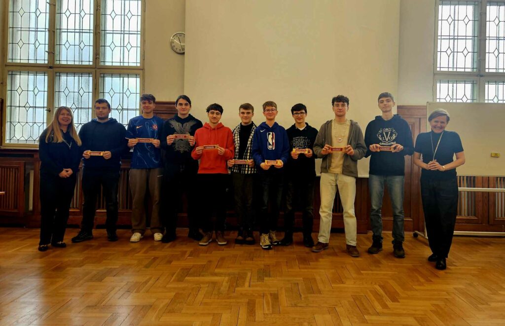 W czwartek 13.02.2025 w szkolnej auli odbył się drużynowy międzyklasowy turniej szachowy z okazji 80-lecia V LO. Do udziału w zawodach zgłosiło się osiem trzyosobowych zespołów z siedmiu klas: 1b, 1c, 1d, 2b, 3b, 3d oraz dwa zespoły z klasy 3e. Zwycięską drużyną okazała się reprezentacja klasy 2d w składzie: Jakub Liśkiewicz, Szymon Kempiński, Szymon Dąbrowski. Drugie miejsce wywalczyła klasa 2b: Piotr Kruk, Dawid Jabłoński, Dominik Parszau, a trzecie miejsce zajęła klasa 3d: Wojciech Brudzyński, Ivan Kaszyński, Tomasz Tarnowski.