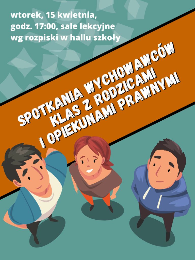 Przypominamy o spotkaniu wychowawców klas z rodzicami i opiekunami prawnymi, które odbędzie się we wtorek o godzinie 17:00.