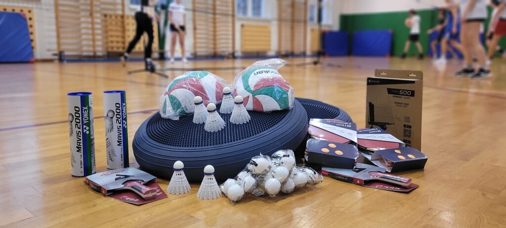 Zakupione zostały m.in. piłki do siatkówki, siatka do badmintona, sprzęt do tenisa stołowego, lotki. Nowością są dwa duże dyski sensoryczne do ćwiczeń stabilizujących i wzmacniania mięśni głębokich, chętnie używane do ćwiczeń indywidualnych i wplatane do obwodu stacyjnego.