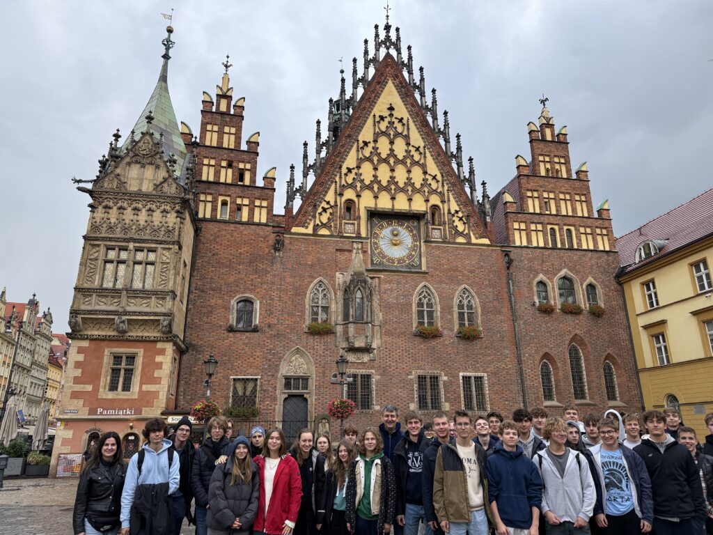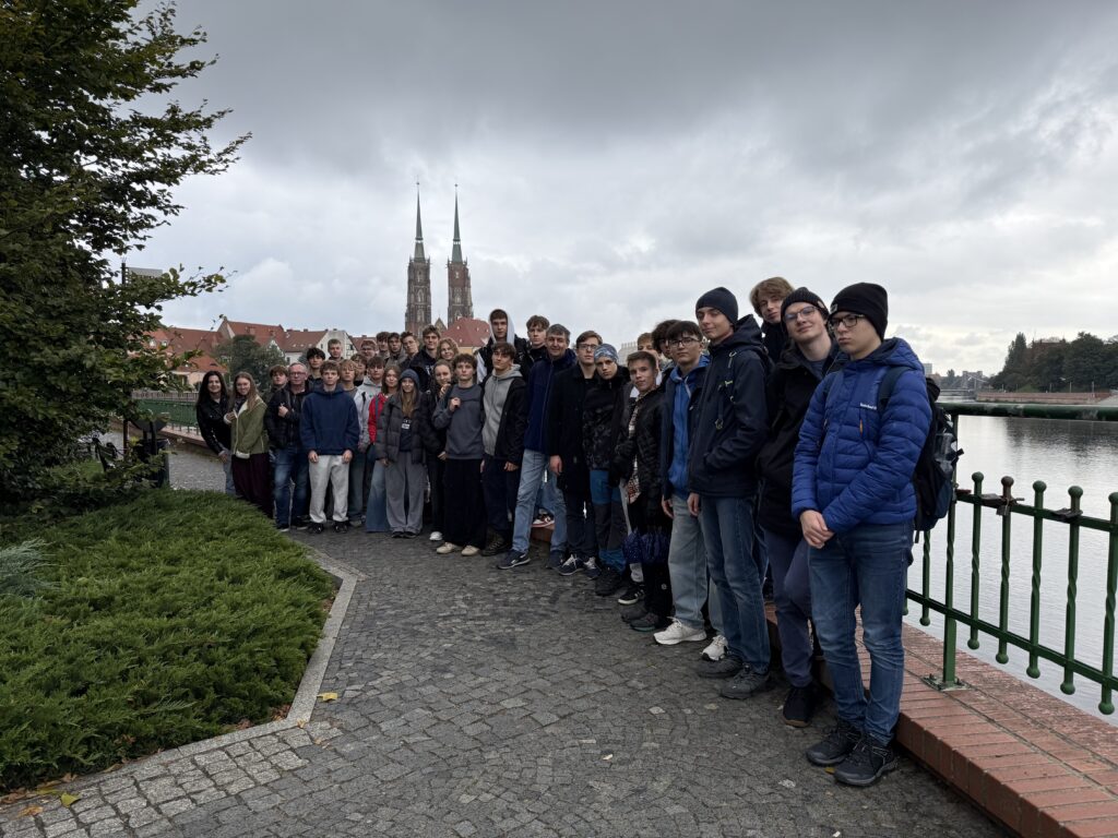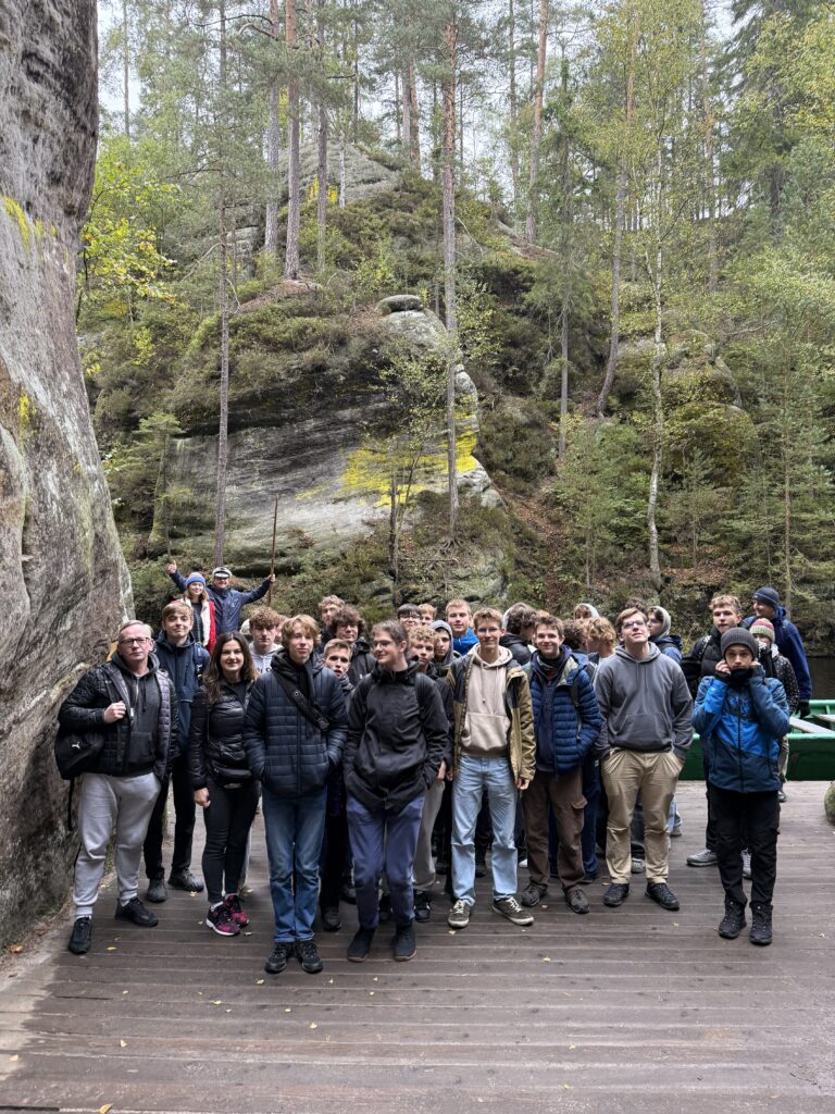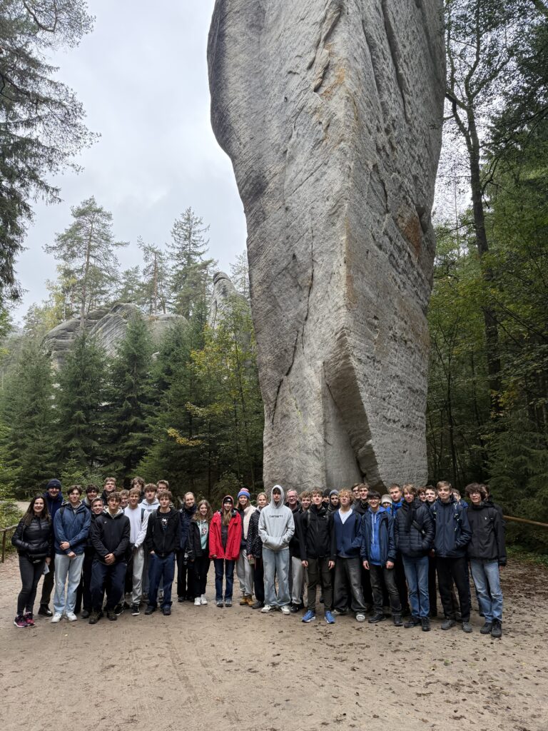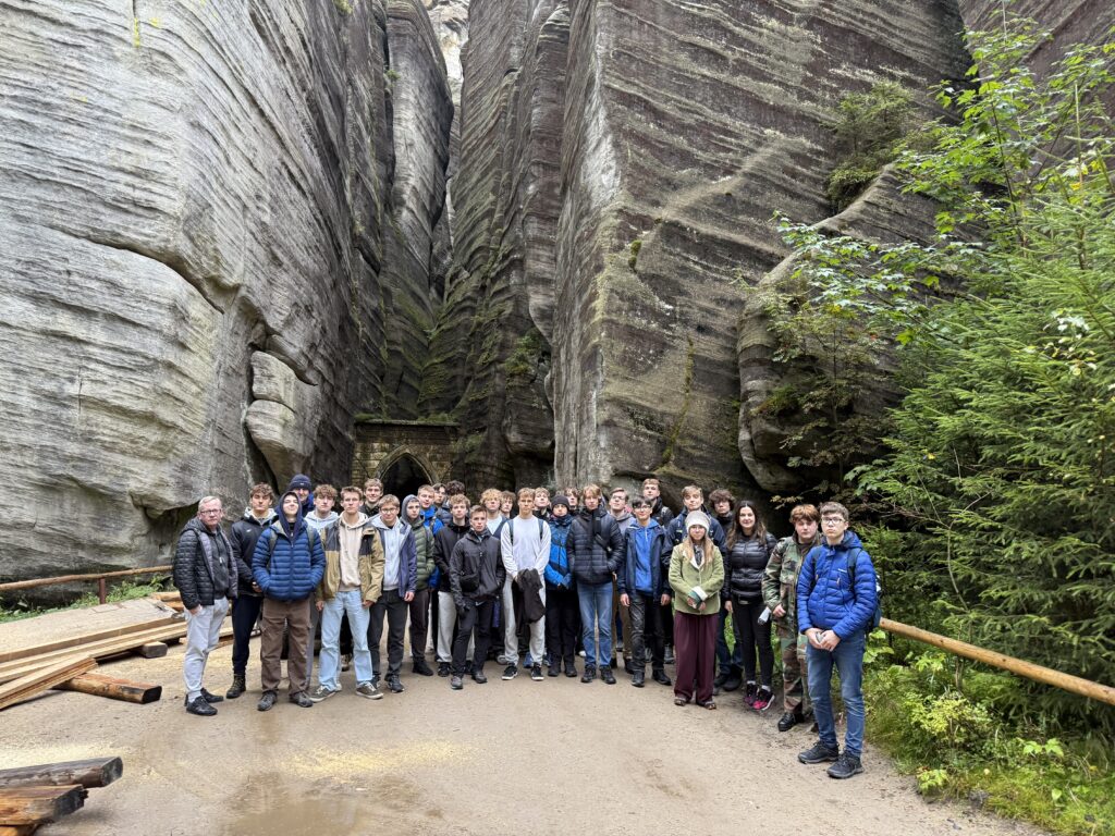 W dniach 30.09 – 03.10.2025 uczennice i uczniowie klasy 3b wyruszyli na niezwykłą wycieczkę, która zaprowadziła ich przez malownicze zakątki Dolnego Śląska, aż do urokliwej Pragi, oraz magicznego skalnego miasta w Aderspach. Wycieczka rozpoczęła się od zwiedzania Wrocławia. Każdy dzień był wyjątkowy. W imieniu całej klasy 3b serdecznie dziękujemy naszym wspaniałym opiekunom p. Tomaszowi Zielińskiemu, p. Aleksandrze Nazar, p. Jackowi Gawrońskiemu, bez których ta wycieczka nie byłaby możliwa. Dzięki ich trosce, opiece, zaangażowaniu i dobremu humorowi mogliśmy bezpiecznie i radośnie przeżyć te kilka dni pełnych atrakcji i wspólnych przeżyć, które na zawsze pozostaną w naszych sercach. To była wspaniała przygoda – dziękujemy!