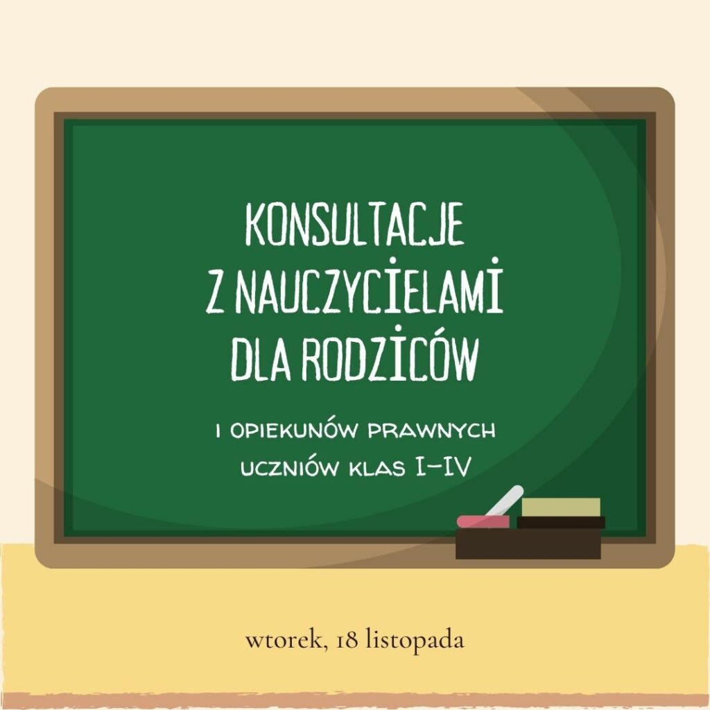 Przypominamy, że we wtorek 18 listopada będą na rodziców oraz opiekunów prawnych uczniów klas I-IV czekać nie tylko wychowawcy, ale również nauczyciele poszczególnych przedmiotów. Kto z Państwa nie skontaktował się mailowo celem zarezerwowania konkretnej godziny, może przyjechać do szkoły między 17:00 a 17:30