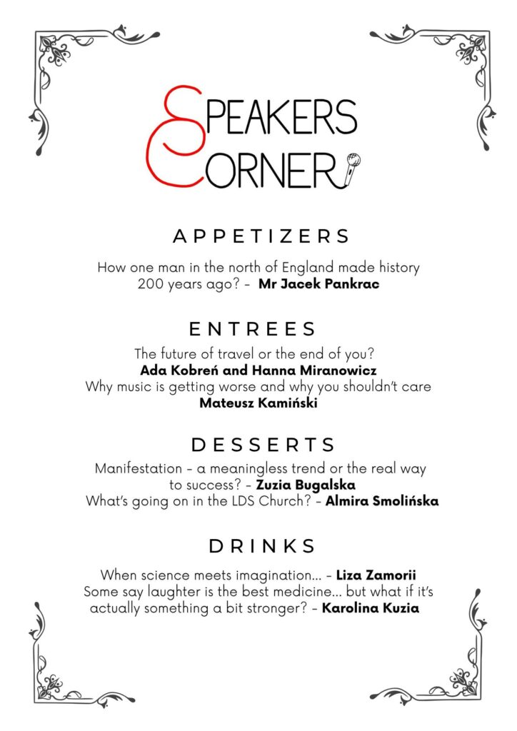 W piątek 21 listopada na czwartej i piątej godzinie lekcyjnej będzie można wysłuchać mówców V LO, którzy przygotowali wystąpienia na wybrany temat i zaprezentują je w języku angielskim.
