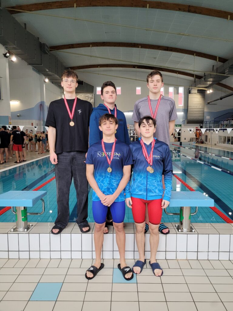 Reprezentacja sztafety chłopców w składzie: Grzegorz Narloch (3c) styl grzbietowy, (pierwsza zmiana), Aleksander Narloch (4b) styl klasyczny (druga zmiana), Bartosz Kasyna (4b) styl motylkowy (trzecia zmiana) i na ostatniej zmianie Michał Kusio (3c) styl dowolny wywalczyła złoty medal w sztafecie 4 x50m! (filmik z zawodów dostępny jest na fb szkoły).
