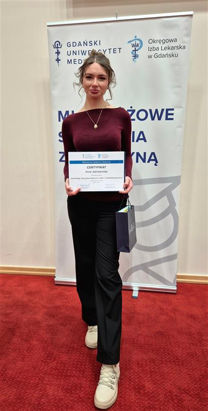 Ania Jędrzejewska z klasy 3a na lutowej Konferencji Młodzieżowych Spotkań z Medycyną w Gdańskim Uniwersytecie Medycznym przedstawiła świetnie przygotowany pod względem merytorycznym wykład pt. Bakteriofagi: precyzyjna medycyna w walce z antybiotykoopornością”. Problem poruszony przez Anię oraz sposób jego zaprezentowania spotkał się z dużym uznaniem obecnych na konferencji lekarzy oraz publiczności złożonej z uczniów trójmiejskich szkół średnich.