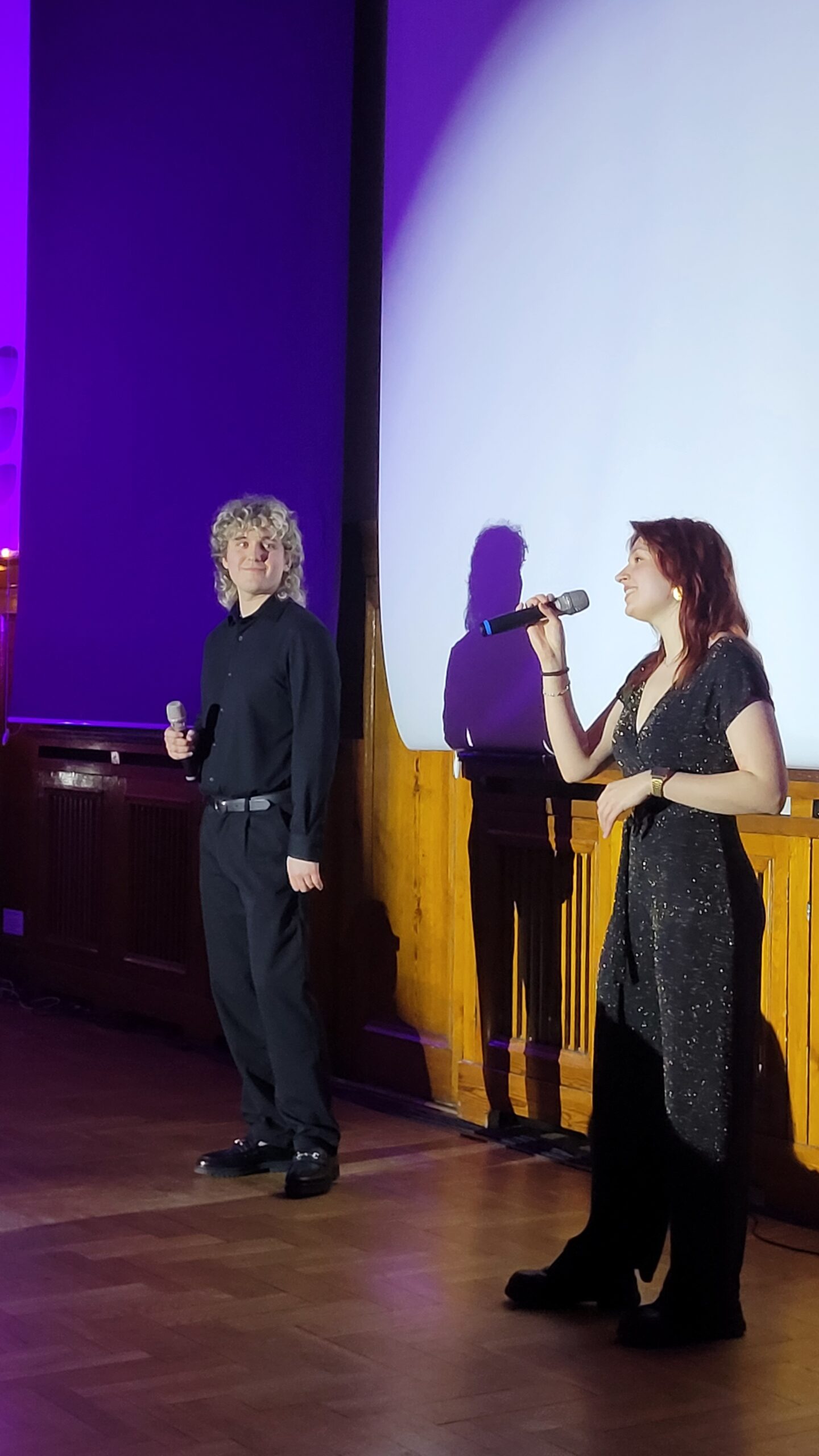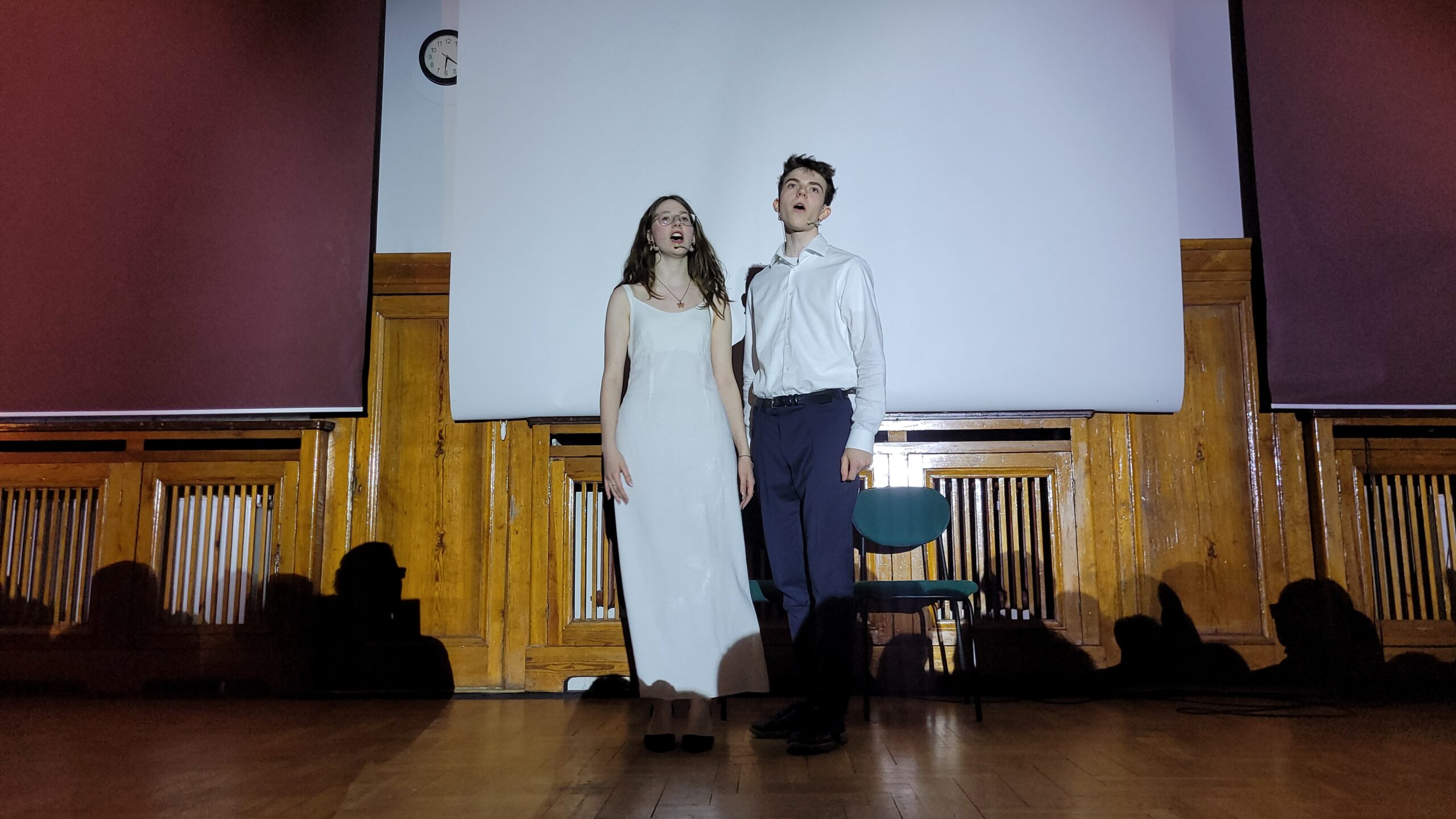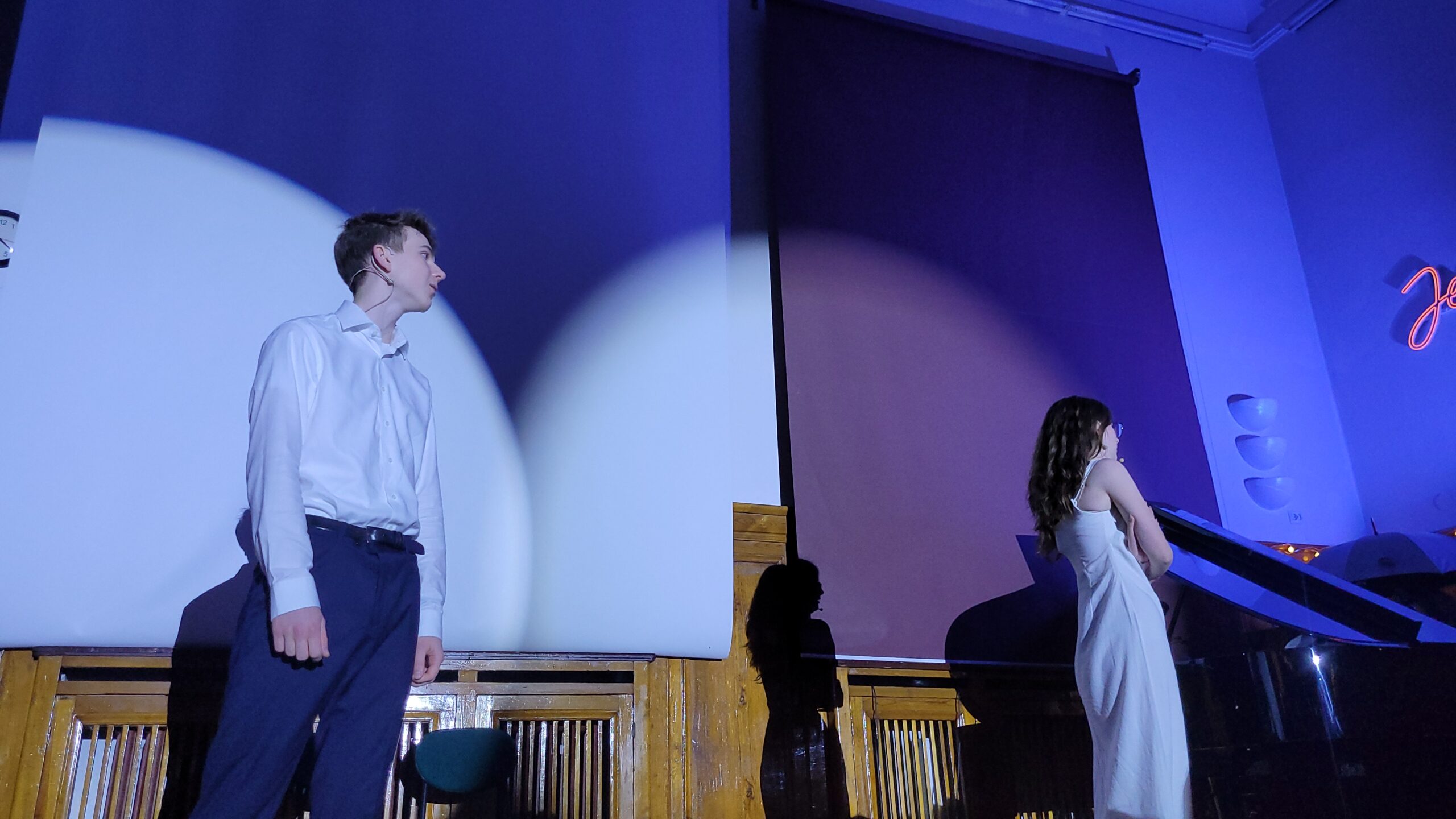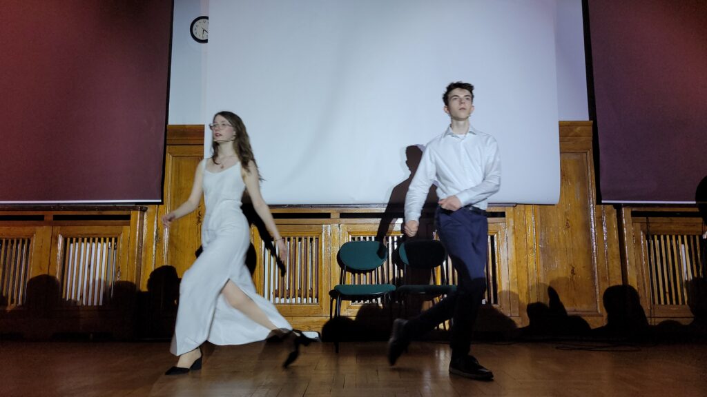 Hania Jasińska i Adela Bojanowska z klasy 3d, prowadzące tegoroczny koncert, razem z Jackiem ćwiczyły nie tylko tekst konferansjerki, ale również współpracę nad płynnością Koncertu i timing’iem. Ich występ również zapisze się w historii Talentów. Nie można nie wspomnieć, że obie stworzyły ubiegłoroczne wydarzenie – musical Hamilton w V LO, a Adela również łączyła pracę przy Talentach z Odyseją Umysłu. Jej drużyna zajęła I miejsce i zdobyła szansę na wyjazd na Światowe Finały Odysei Umysłu do Stanów.