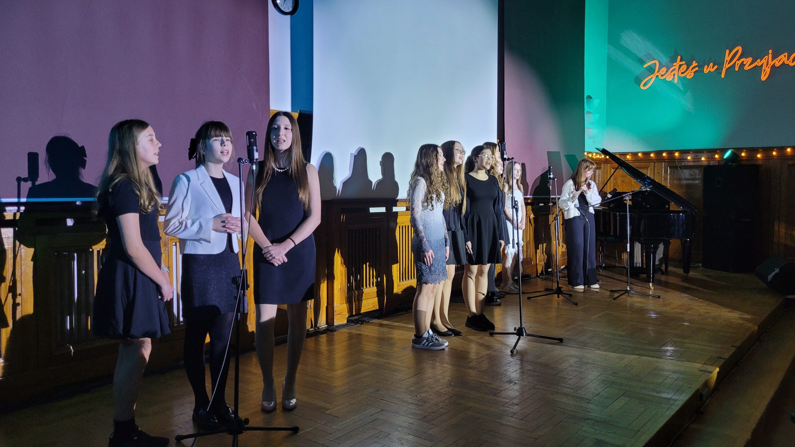 To niezwykle popularne muzyczno-taneczne wydarzenie łączy pokolenia i integruje szkolną społeczność. Każdy mógł znaleźć coś dla siebie. Był śpiew, muzyka pop i muzyka poważna, mocne dźwięki perkusji i gitar elektrycznych, a także taniec wschodni, gra na skrzypach, flecie i być może po raz pierwszy w historii szkoły – kwintet – fortepian, kontrabas, wiolonczela i obój. Były też fragmenty musicali jak na przykład brawurowe wykonanie przez rodzinny duet absolwentów brata i siostrę Joannę Karczewską i Marcina Karczewskiego utworu “Upiór w operze” czy “Fine” z musicalu Ordinary days w wykonaniu znanych już szkolnej społeczności aktorów z “Hamiltona” duetu Almira Słomińska (3d) i Dominik Dałek (3b) przy akompaniamencie Wiktorii Zdanowskiej z klasy 3d.