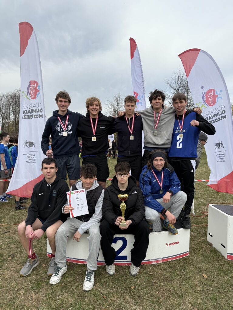 Miło nam poinformować, że w dniu 14.04.2026 roku reprezentacja chłopców osiągnęła duży sukces, zajmując II miejsce w Gdańskiej Licealiadzie w drużynowych biegach przełajowych, które odbyły się na terenie Parku św. Jana Pawła II. Zawody zgromadziły 10 drużyn, a rywalizacja była bardzo wyrównana. Nasi zawodnicy pokazali ogromne zaangażowanie, determinację i świetne przygotowanie, pokonując wymagającą trasę. Dzięki wspólnemu wysiłkowi całej drużyny udało się sięgnąć po zasłużone miejsce na podium.