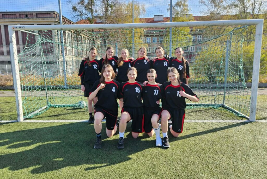 Skład drużyny: Laura Kaczmarczyk 1c, Joanna Zamojska 1d, Aleksandra Jaśkiewicz 1e, Maria Kopaczewska 1e, Łucja Piotrowicz 2d, Marta Gusmann 4a, Nina Jarowicz 4a (bramkarka), Oliwia Kreja 4a, Julia Peć 4a, Gabriela Gresik 4e (kapitanka).