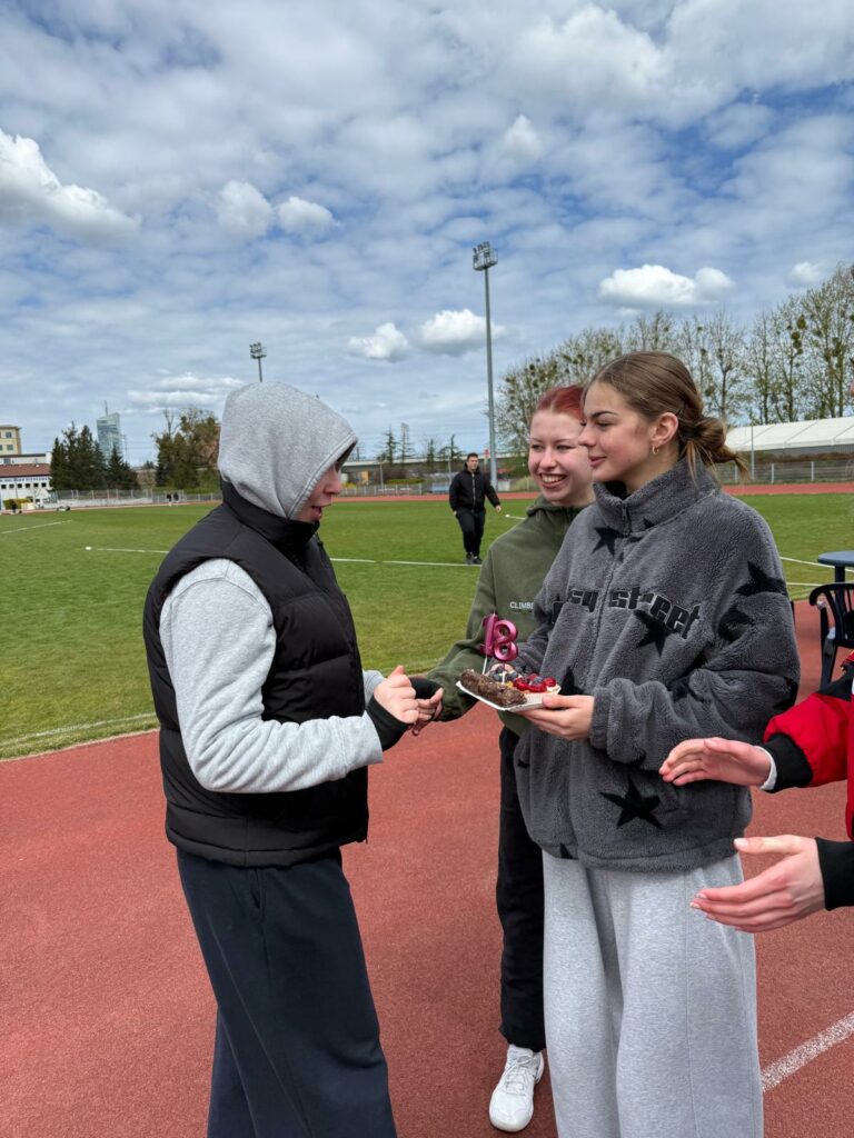 Nie możemy nie wspomnieć, że nasza maturzystka Karolina Makowska spędzała dzisiejszy poranek na zawodach w dniu swoich 18-tych urodzin. Koleżanki z klasy zrobiły jej niespodziankę i przygotowały a la torcik. Zostało to uwiecznione na na zdjęciach. Karolino jest nam tym bardziej miło, że w dniu urodzin, w dodatku na kilka dni przed maturą, zechciałaś jeszcze wziąć udział w zawodach i spędzić urodzinowy dzień z nami na stadionie. To dla nas ogromny komplement. Wszystkiego najlepszego!