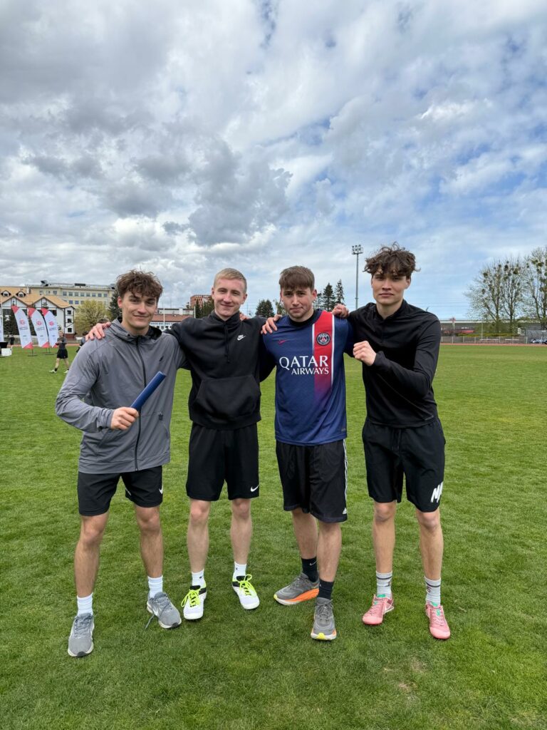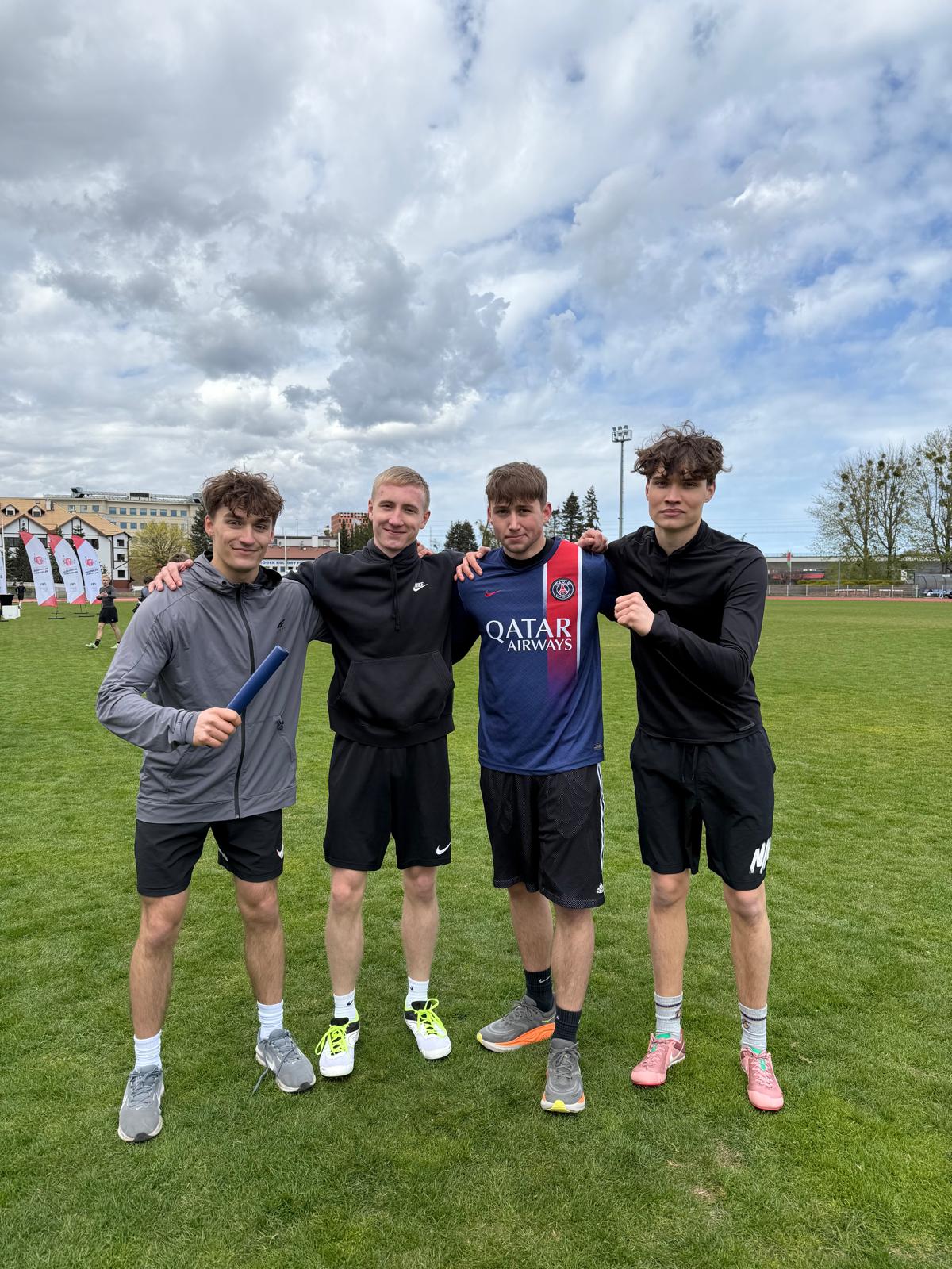 Sztafeta 4x100m chłopców w składzie: Bartek Sołtysiak (4e), Patryk Połubok (4d), Jan Szteler (4c) i Kuba Borejko (3b) zdobywając złoty medal!