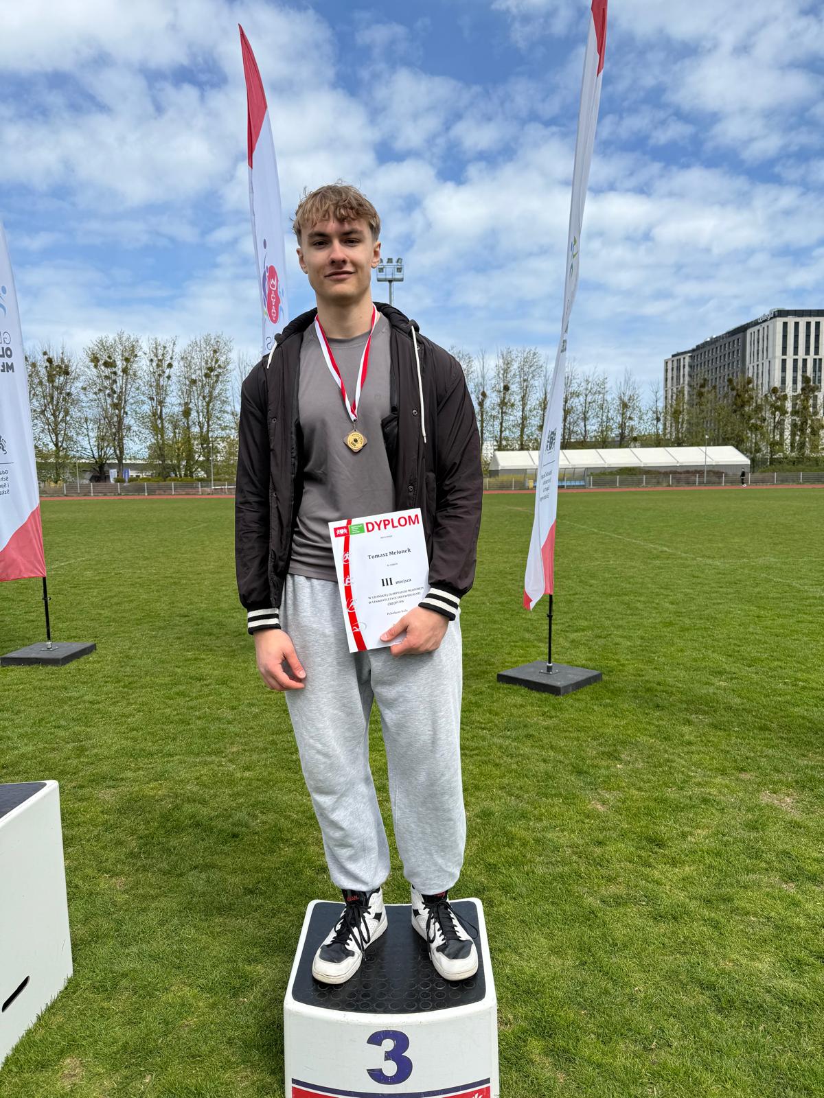Tomasz Melonek (3d) zdobył brązowy medal w pchnięciu kulą, a Zosia Nadolska (3c) i Tomasz Tarnowski (4d) oboje wywalczyli brązowy medal w skoku w dal.