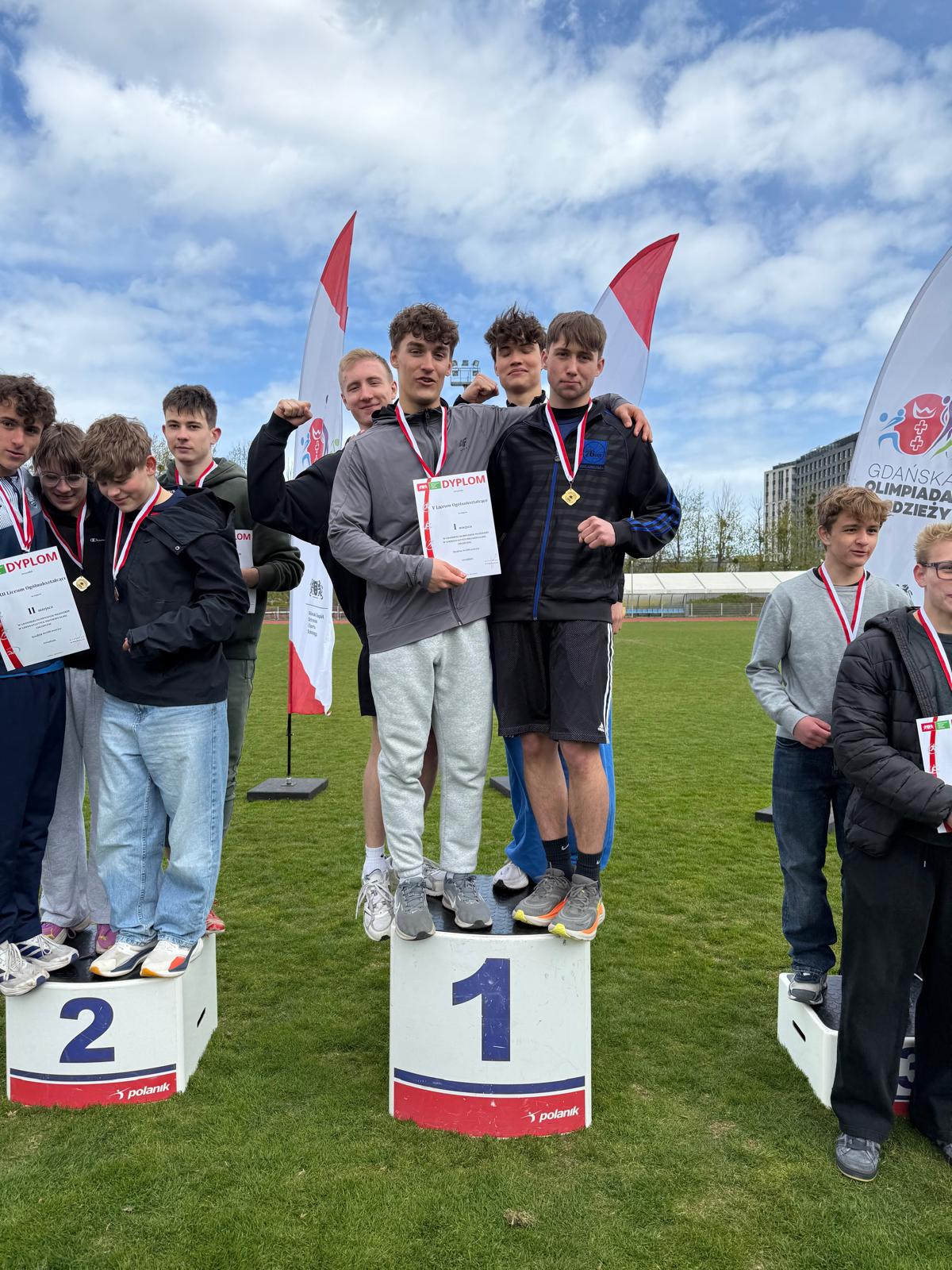 Srebro w skoku wzwyż wywalczył Bartek Sołtysiak (4e) oraz Jakub Borejko (3b) w biegu na 100m. Natomiast na najwyższym podium stanęli: Jan Szteler (4c) w konkurencji 400m oraz Patryk Kryger (2a) w biegu na 1500m zdobywając dla V LO złote medale!